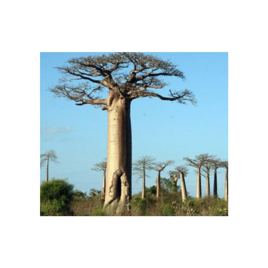 Bezesporu nejkrásnějším a největším ze všech šesti druhů baobabů endemických pro ostrov Madagaskar. Tento „strom života“ je proslulý svým masivním, válcovitým kmenem, který může dosahovat průměru až 3 metrů, a plochou korunou, jež v období bezlistí připomíná kořeny rostoucí k nebi. Je symbolem madagaskarské krajiny, zejména světoznámé „Aleje baobabů“. Pro pěstitele představuje tuto rostlinu fascinující výzvu – jako sukulentní dřevina je ideální pro tvorbu unikátních, robustních bonsají, které v sobě nesou nádech pravěku a extrémní odolnosti vůči suchu.