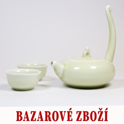 Velmi zajímavá konvička s dvěma malými šálky. Barva je světle celadonová. Kromě zabarveného obvodu okolo víčka je sada bez závad.