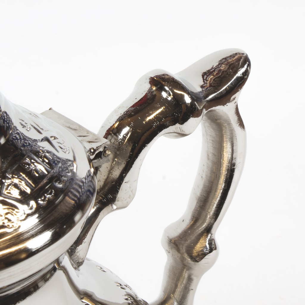Originální konvička na tuareg vyrobená v marockém Fesu. Konvička je vyrobena z masivního materiálu (poniklovaná měď) . Vzhledem k tomu, že tato konvička byla vyráběna ručně, mohou se na ni vyskytovat nedokonalosti či nepřesnosti. Objem 1,5 l