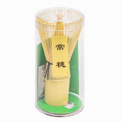 Bambusová metlička pro přípravu matcha. 常穂 (Jōho) – „běžný typ“, standardní chasen s přibližně 70–80 štětinami.