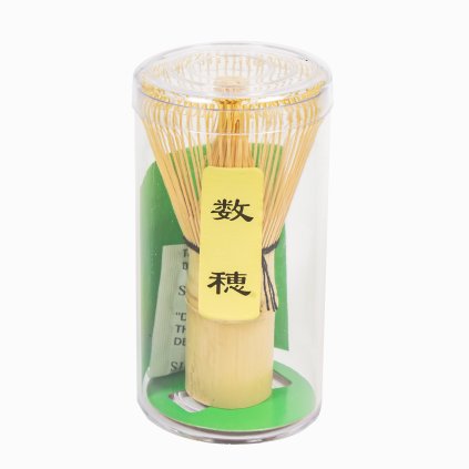 Bambusová metlička pro přípravu matcha. 数穂 (Kazuho) – „méně štětin“, jednoduchý typ s menším počtem proutků (např. 60). Vhodný pro usucha (řidší matcha).