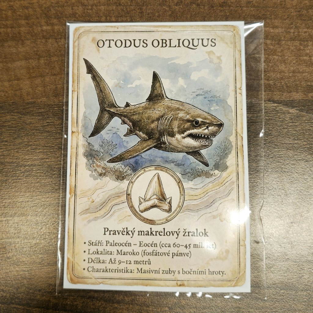Nabízíme vám unikátní šperk s vědeckou historií – přívěsek vyrobený ze skutečného fosilního zubu vyhynulého druhu žraloka Otodus obliquus. Nejedná se o odlitek ani repliku, každý kus je originál formovaný přírodními procesy před desítkami milionů let.