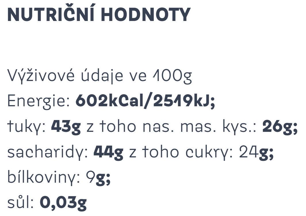 Může obsahovat stopy lískových ořechů, mandlí a mléka.